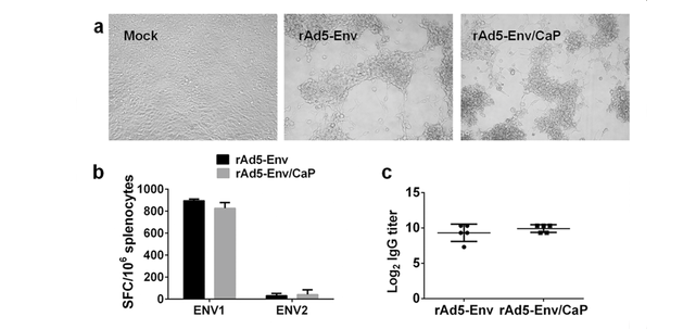 In order to overcome the negative impact of Adenovirus neutralizing anti-body, the scientific and technical personnel of the team applied the biomineralization widely existing in the nature in the modification and improvement of the performance of vaccines. Using the Adenovirus carrier vaccine carrying AIDS antigen as the model, researchers have discovered that calcium phosphate can form a layer of mineralized film at the surface of Adenovirus under certain conditions, which seems to add a layer of shell to the virus. After a series of in vitro and in vivo experiments, it indicates that BVSE technology can effectively avoid the Adenovirus carrier vaccine from being identified by the neutralizing anti-body, effectively infect the target cells and facilitate the expression of HIV antigen gene carried. Meanwhile, they have also discovered that the Ca2+ ions carried at the surface of the vaccines treated by BVSE also function as an adjuvant, which enables the vaccine to unleash a greater potential, stimulates more effective immune response of multi-functional cells of HIV virus specificity and significantly enhances the immune effect of HIV vaccine. The research has offered a new idea for improving the use efficiency and scope of Adenovirus carrier, which is of important scientific significance and application values for the research and development of new and more effective vaccines and immune therapy strategies against AIDS, other infectious diseases and tumors.