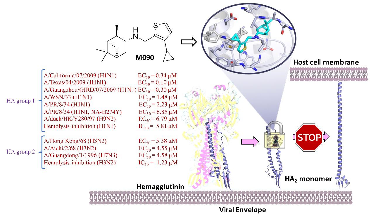 2018-06-011166Recently, Professor Hu Wenhui's team and Professor Yang Zifeng's team have made significant progress in the field of anti-influenza drug research and development. The research results "Discovery of Highly Potent Pinanamine-Based Inhibitors against Amantadine- and Oseltamivir-Resistant Influenza A Viruses" was published online on May 25th in Journal of Medicinal Chemistry (IF = 6.259), the top journal of medicinal chemistry. This research provides a brand new active site for the design of new HA inhibitors and a basis for the development of new broad-spectrum anti-influenza drugs.