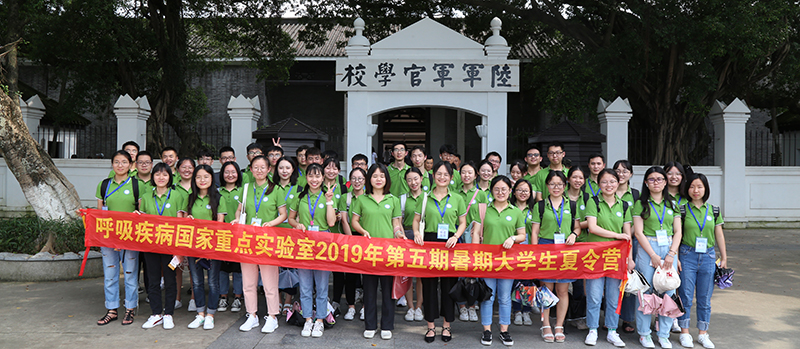 随后,两位往届优秀夏令营学员实验室肺血管课题组何汶俊(导师:王健教授)、COPD学组查姗姗(导师:陈荣昌教授)与学员们深情并茂地分享了自己是“如何走近实验室、走进实验室”学习生活的经历。他们分享了自己的课题研究和日常学习生活,介绍了自己所在课题组的师资力量、各个小的研究方向、培养模式、日常工作内容与氛围等,积极为学员们未来的研究生学习生活答疑解惑。下午,学员们来到广州医科大学番禺校区参观。新校区安静优雅、各项设施配套齐全、景色优美,给学员们留下了深刻的印象。随后,学员们来到黄埔军校(旧址)参观,游览了庄严的陆军军官学校。在史迹陈列馆,学员们观看了黄埔军校发展影片、各位军人的采访及其使用的物件、书籍。阅读展览馆呈现的历史,学员们不禁肃然起敬,不禁想起孙中山先生对学生的教诲:“革命尚未成功、同志仍须努力”,值得每位学员去回味。在新时代、新阶段,立足医学、科研的我们,更要珍惜生活,不虚度光阴韶华。
