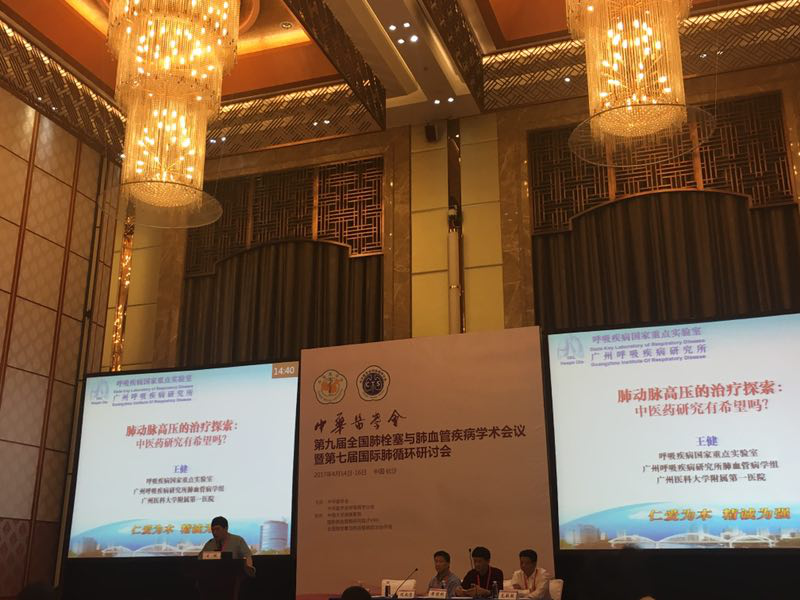 呼吸疾病国家重点实验室关于肺血管病诊疗及研究人员共有十五人参加此次会议,肺血管病学组组长王健教授受大会邀请做了题为《肺动脉高压的治疗探索:中医药研究有希望吗?》的专题演讲,获得与会各方的热烈讨论。呼吸疾病国家重点实验室特聘教授汤海洋获邀主持肺动脉高压转化医学专场。洪城主任获邀负责会议继续教学项目《肺动脉造影检查:操作规范与典型病例分析》。青年学者陈豫钦在大会进行了题为《烟草烟雾及有害成分通过nAChR-sGC-cGMP-PKG-TRPC途径介导肺动脉平滑肌细胞钙稳态失衡》的报告,并获得优秀论文奖。