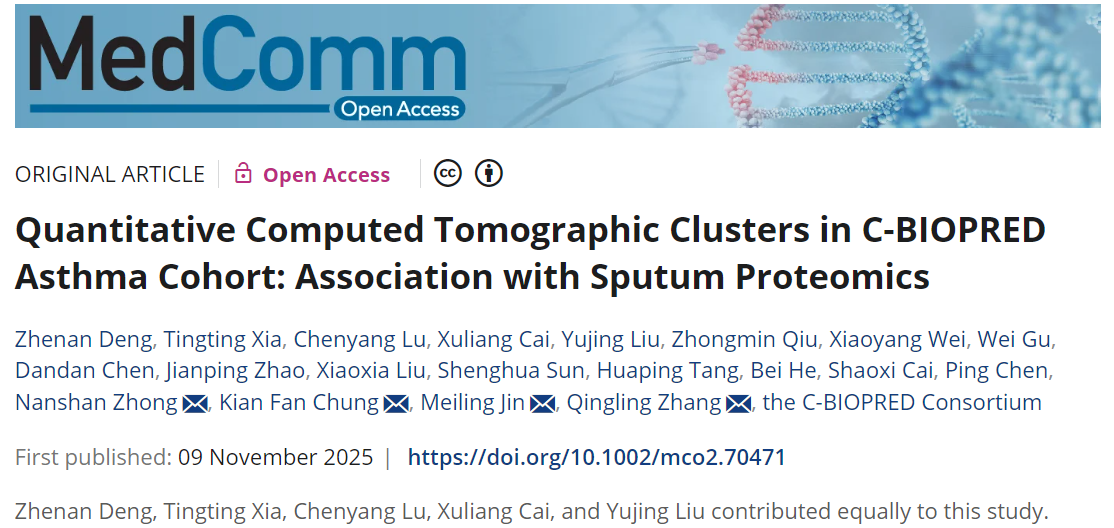 • C-BIOPRED再添新作|钟南山院士/张清玲教授团队勾勒重度哮喘CT表型-蛋白质组关联新维度