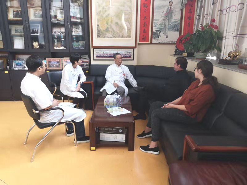 Megan与钟院士及Ivan教授,罗群教授,韩茜教授在大查房前进行交流