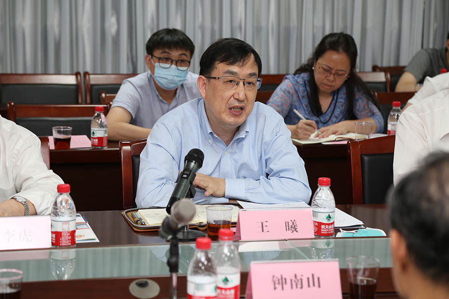 王曦副省长一行考察了广州呼吸中心和实验室的建设发展情况,了解了实验室团队在抗击新冠肺炎疫情中的工作。在座谈会上,冉丕鑫主任汇报了国家高层次科研平台组建方案,钟南山院士阐述了组建国家高层次科研平台的意义与可行性。围绕组建国家高层次科研平台这一主题,省政府相关部门、生物岛实验室、中科院广州生物医药与健康研究院负责人和刘金保副校长分别在会上发言。