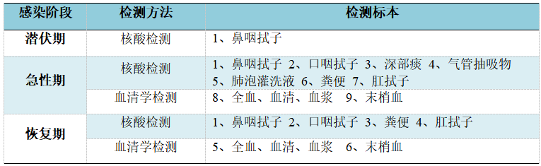 依据明确的流行病学接触史、全身症状和肺炎影像学改变等可作出COVID-19临床诊断,但实验室检测是明确其病原学诊断、发现和排查者的重要依据。由于疾病发展过程中病毒载量、血清学指标等会发生动态变化,如何在特定阶段采取合适的实验室检测方法对临床医师进行COVID-19确诊至关重要。本共识总结国内外现状,结合广东省一线防治及检测经验给出了相关建议及解读(图2)。