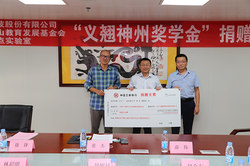 2020-10-26238610月26日下午,“义翘神州奖学金”捐赠仪式在实验室会议室顺利举行。北京义翘神州科技股份有限公司总经理张杰、市场销售总监薛伟、区域销售经理敖锋,广州医科大学赵醒村副校长、研究生院林超明院长、实验室赵金存副主任、实验室办公室主任陈涛及研究生代表参加了捐赠仪式。捐赠仪式由陈涛主任主持。张杰总经理在致辞中表示,2019年新冠疫情爆发后,中国科研人员在与疫情的赛跑中取得举世瞩目的成就,彰显了生命科学研究的重要意义,中国生命科学的进步离不开青年学子的快速成长,公司设立“义翘神州奖学金”旨在激励生命科学领域的青年学子投身科研、勇于创新,为我国生命科学发展做出积极贡献。张杰总经理并介绍了公司发展情况。