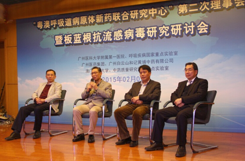 2015-02-0212782月2日,“粤澳呼吸道病原体新药联合研究中心”第二次理事会暨白云山板蓝根颗粒抗病毒研究研讨会在广州呼吸疾病研究所举行。此次研讨会由钟南山院士科研团队\白云山和黄中药研究团队和澳门科技大学研究团队共同举办。
