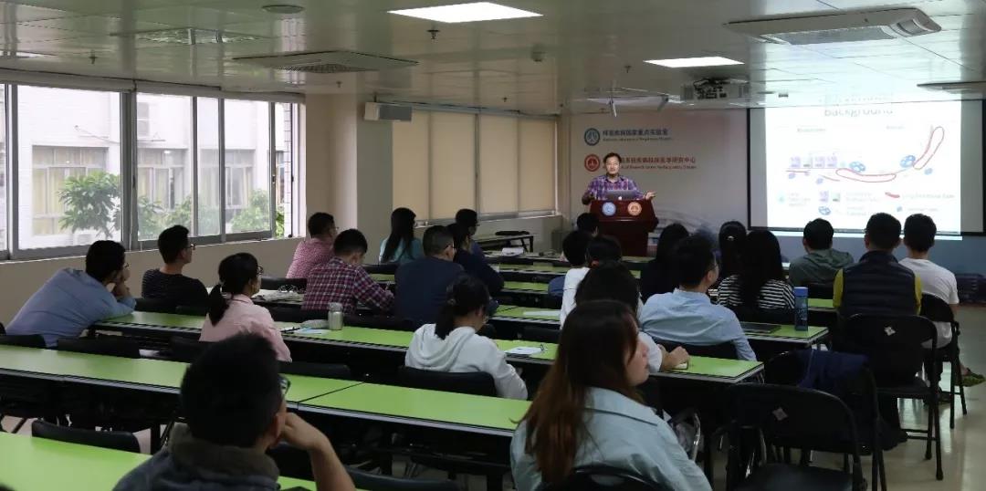 讲座后,周斌教授与实验室肺纤维化与干细胞治疗等研究领域的骨干进行了探讨,并于钟南山院士就呼吸呼吸再生医学、肺部肿瘤免疫方面的研究及未来合作进行了交流与探讨。并在赵金存副主任教授的带领下参观了实验室,双方对未来的进一步的合作与交流充满了期待。