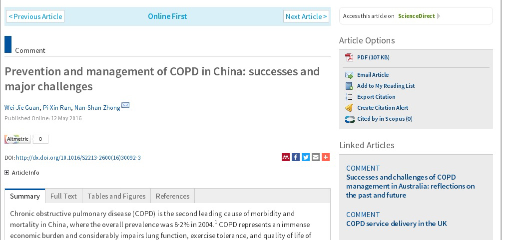 实验室钟南山院士及研究团队在《柳叶刀—呼吸病学》杂志发表述评